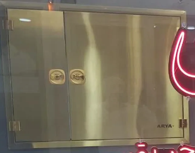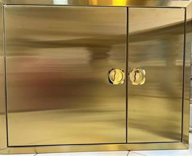 جعبه دوقلو توکار آریا - ضخامت یک میلیمتر- درب و فریم استیل طلایی خش دار راست باز شو