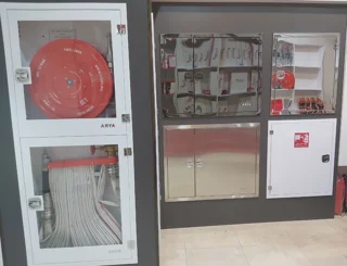جعبه آتش نشانی دوطبقه توکار - ضخامت یک میلیمتر- سفید – درب طلق شفاف راست باز شو - آریا